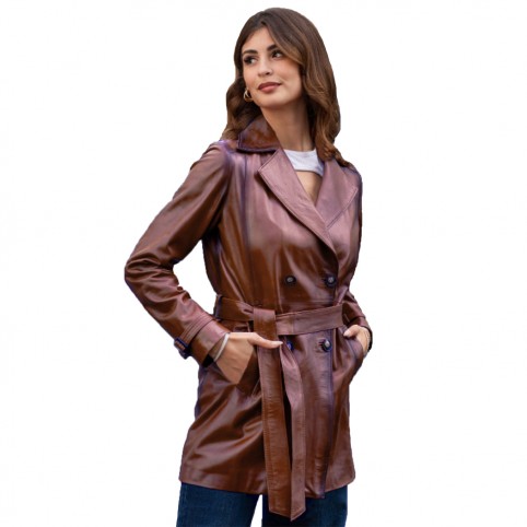 3/4 Agneau Lainé Satiné - Très Souple et Leger - Coloris Cognac. Disponible en boutique et sur demande dans toutes les tailles et tout coloris dans la limite des stocks.
